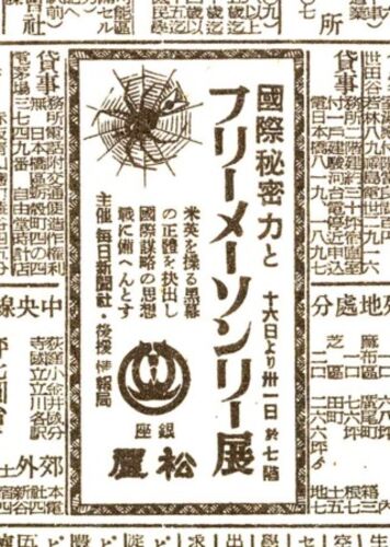 朝日新聞昭和18年1月16日付4面広告よりお正月から銀座松屋でフリーメーソン展……。主催は毎日新聞社、後援は情報局とある。展示内容が激しく気になる。 米英を操る思想の正体を抉出し国際謀略の思想戦に備へんとす 周知の通り、最近タモ神系の人びとの間で流…